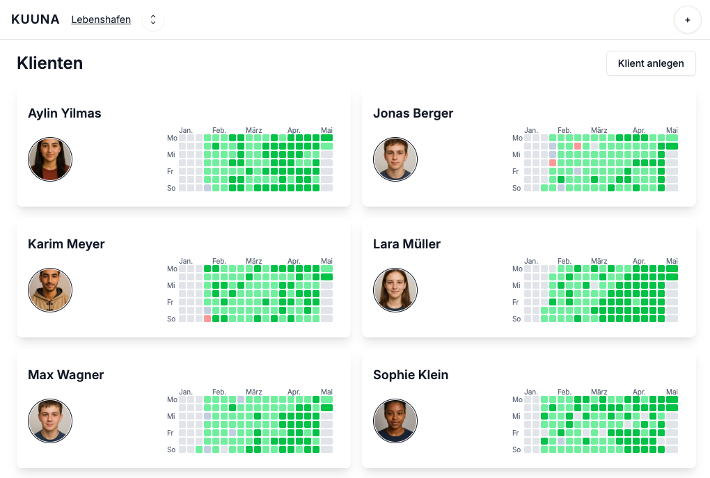 Kuuna ist eine KI gestützte Dokumentationssoftware für die Kinder- und Jugendhilfe. Sie hilft Ihnen dabei, bessere Tagesdokus und Entwicklungsberichte schneller zu schreiben und die Fortschritte Ihrer Klienten im Überblick zu behalten.